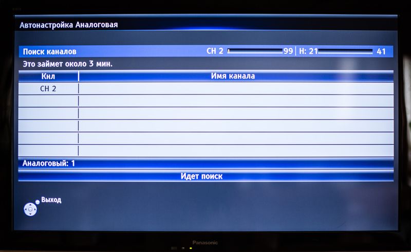 5. Меню поиска аналоговых каналов. По завершении поиска меню должно автоматически закрыться и включится первый аналоговый канал.