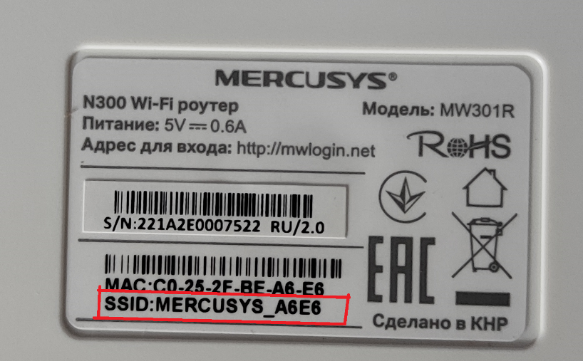 2. Подключите любое устройство (смартфон, планшет и т.д.) к сети Wi-Fi. Имя сети, которое надо выбрать в списке, указано на обратной стороне роутера.